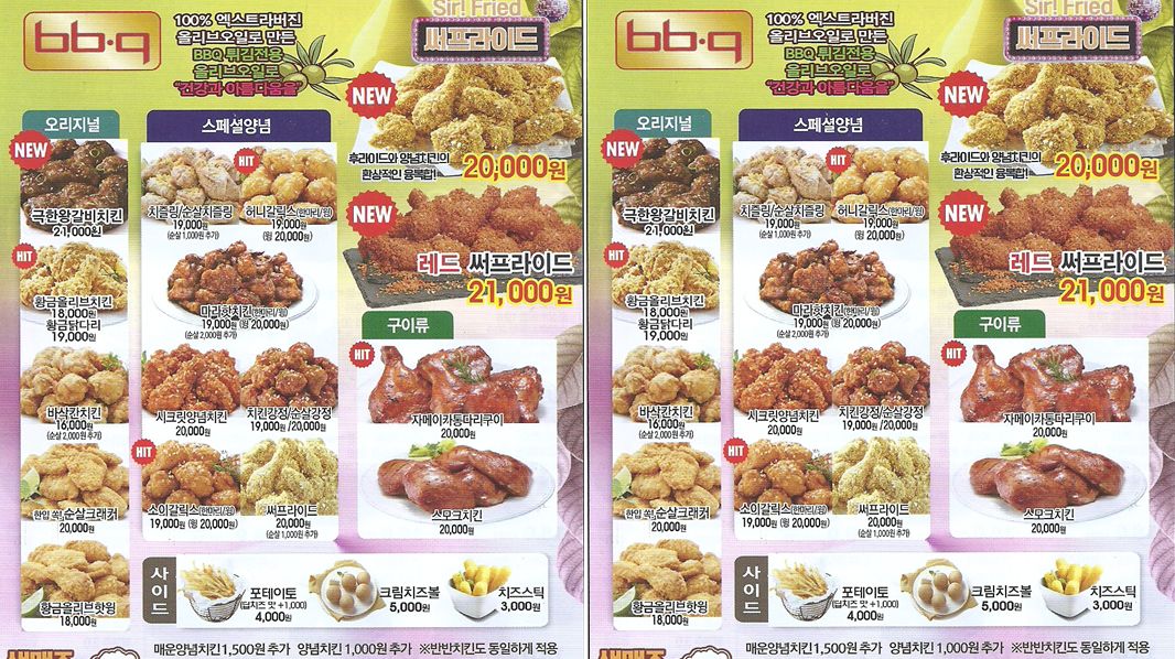 오늘은 BBQ치킨 메뉴 가격 정보 가지고 왔어요.