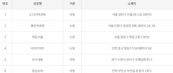 868회 로또당첨지역은 서울 양천구에서 자동 1명, 서울 은평구에서 수동 1명, 서울 중랑구 묵동에서 수동1명, 인천 중구 항동에서 수동1명, 경기 수원시 권선구 호매실동에서 자동 1명, 전북 부안군 부안읍에서 자동 1명으로 자동3명, 수동3명 모두 다른곳 6곳에서 868회 로또당첨지역이 나왔답니다.
